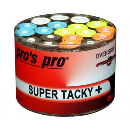 pros pro SUPER TACKY PLUS.De hoge kwaliteit van onze PROS PRO Overgrip is al vele jaren bekend bij spelers in heel Europa.Extreem plakkerig gevoel, uitstekende grip, zeer goede duurzaamheid,beste zweetabsorptie en hoog comfort kenmerken de uitstekende SUPER TACKY PLUS.Incl. afwerkingsband. Dikte: 0,5 mm.Kleur: mix kleur. Eén doos bevat 60 stuks