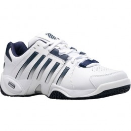 De K-Swiss Accomplish lV Heren is afkomstig uit de K-swiss schoenencollectie. De Accomplish is een veelzijdige en stabiele tennisschoen voor de veeleisende tennissers. De robuurste schoen heeft een klassiek design en zorgt voor comfortabele ondersteuning op de baan.