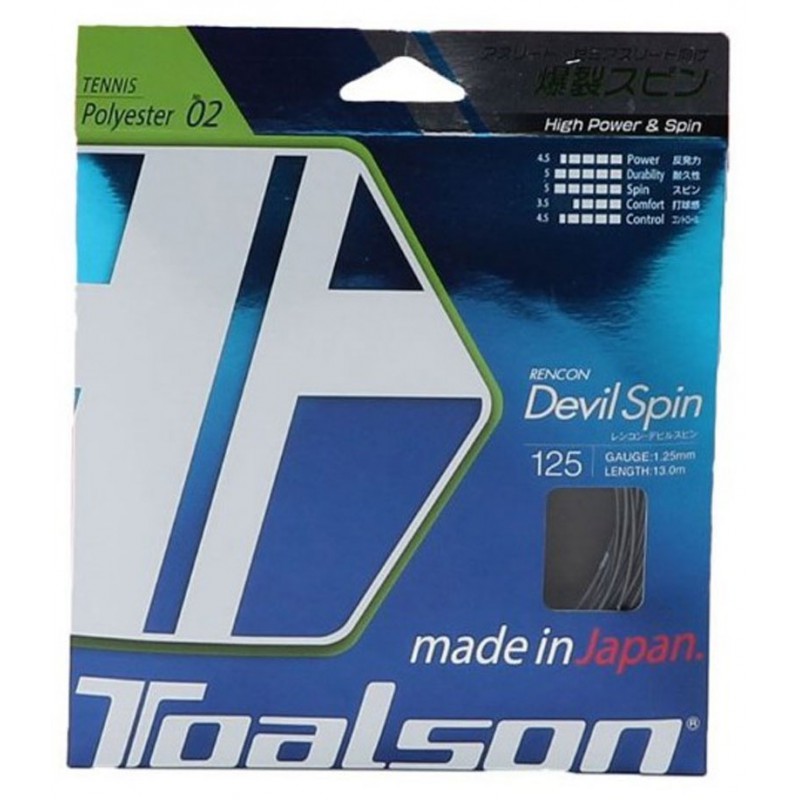 De Toalson Rencon Devil Spin is een monofilament snaar en biedt op een optimale combinatie van power, controle en spin. Deze polyester snaar is de nieuwe sensatie onder de spinsnaren.
