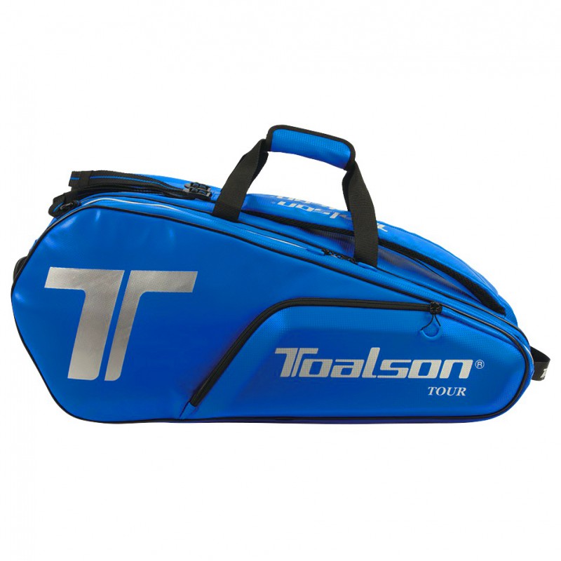 Toalson tour 12 bag. Een racket bag met drie vakken en twee zijvakken.